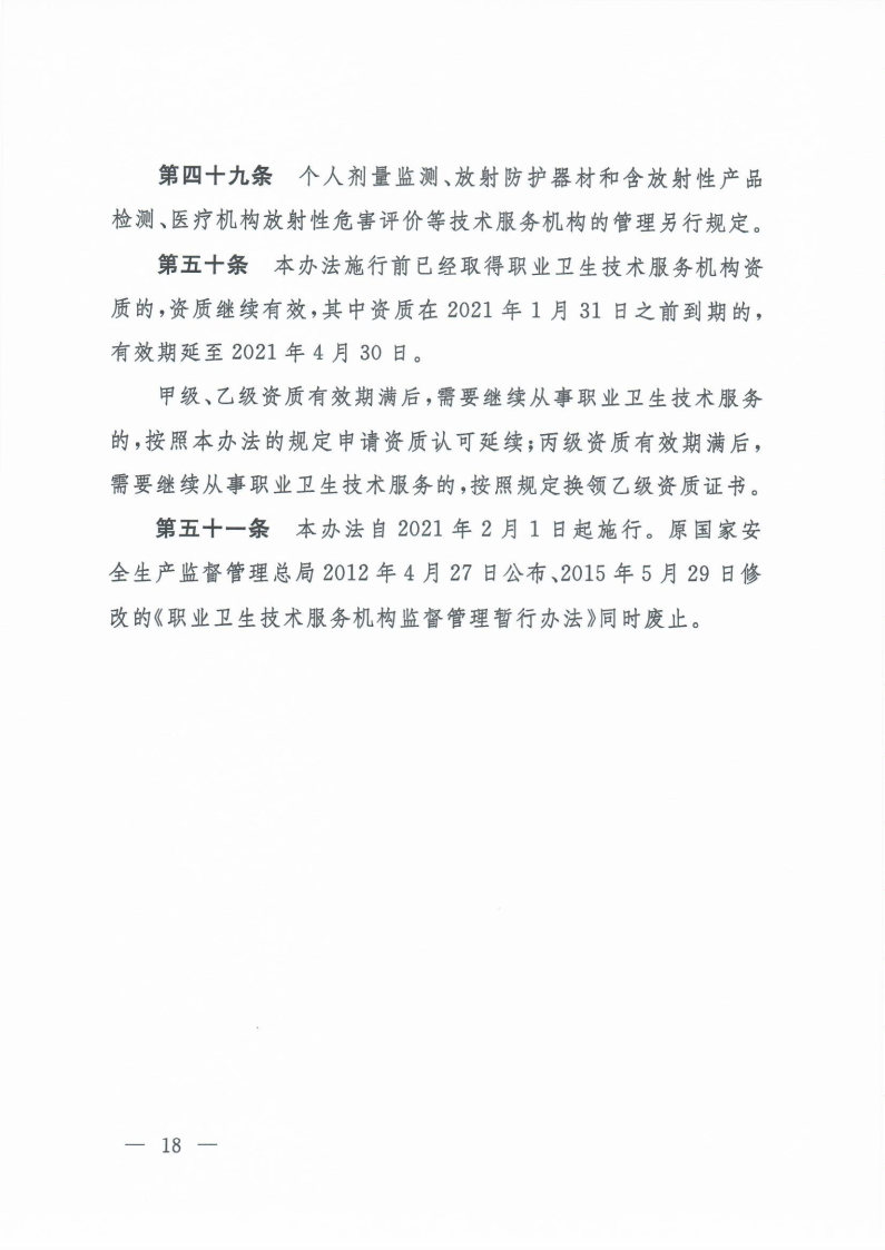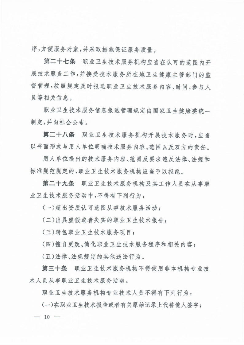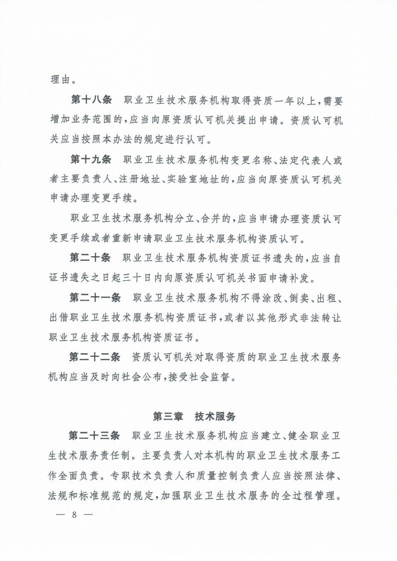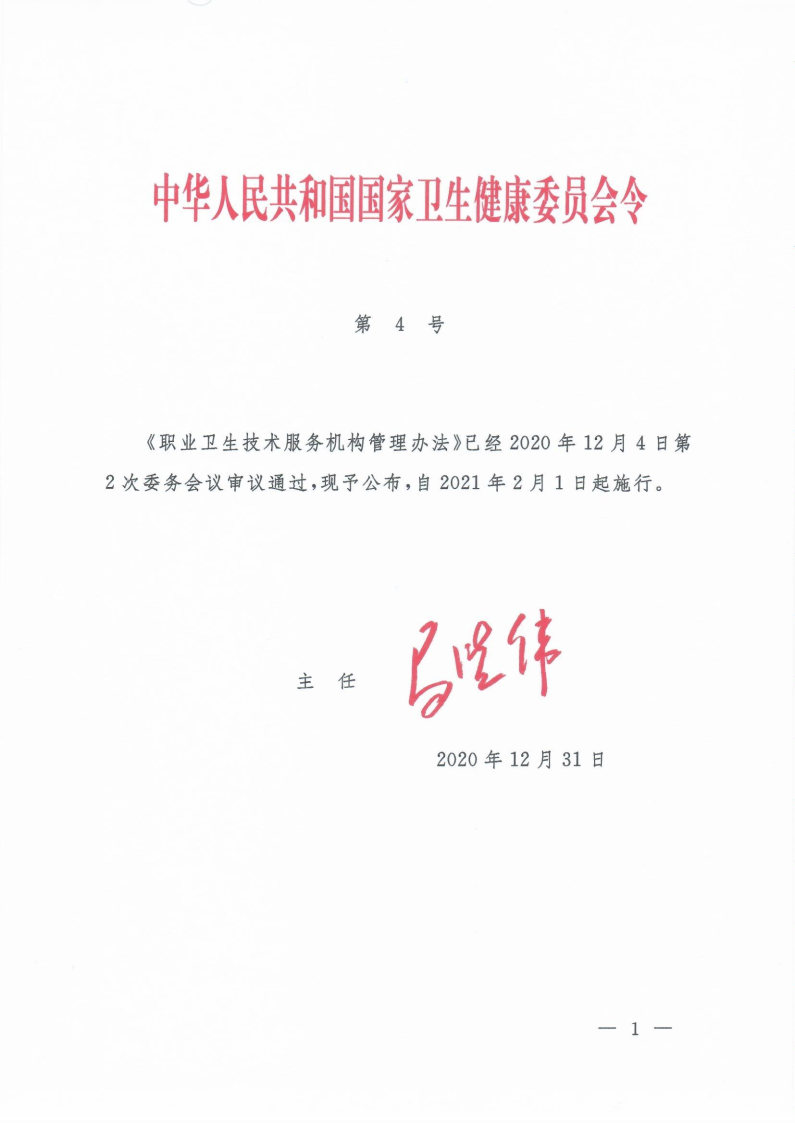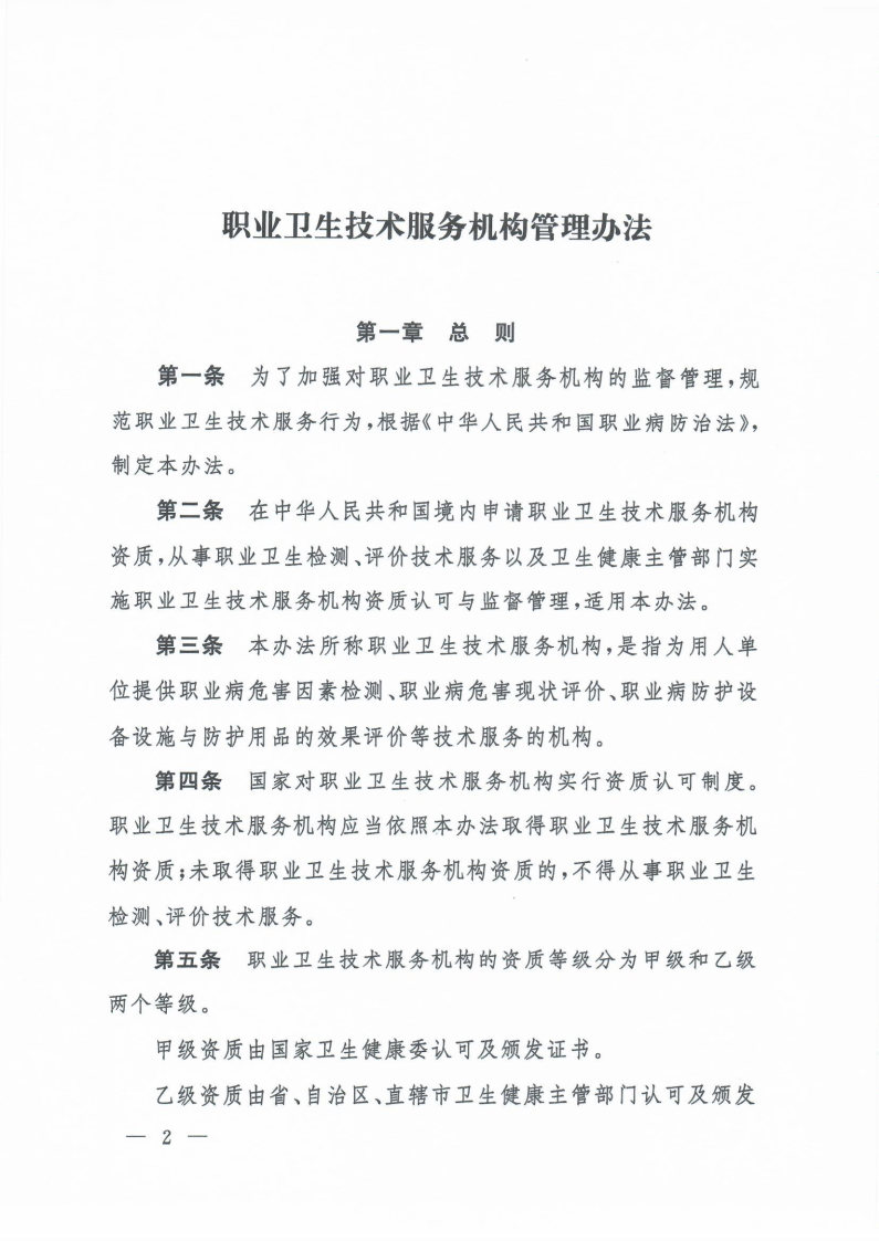 職業(yè)衛(wèi)生技術服務機構管理辦法(國家衛(wèi)生健康委令第4號)