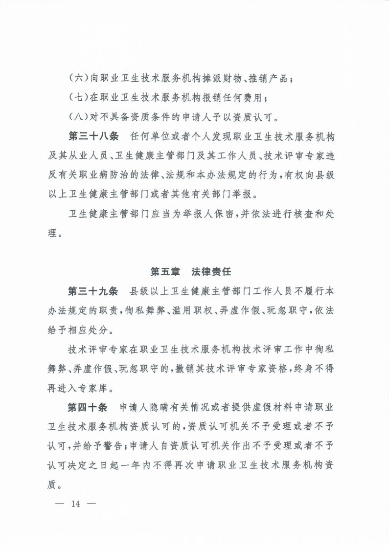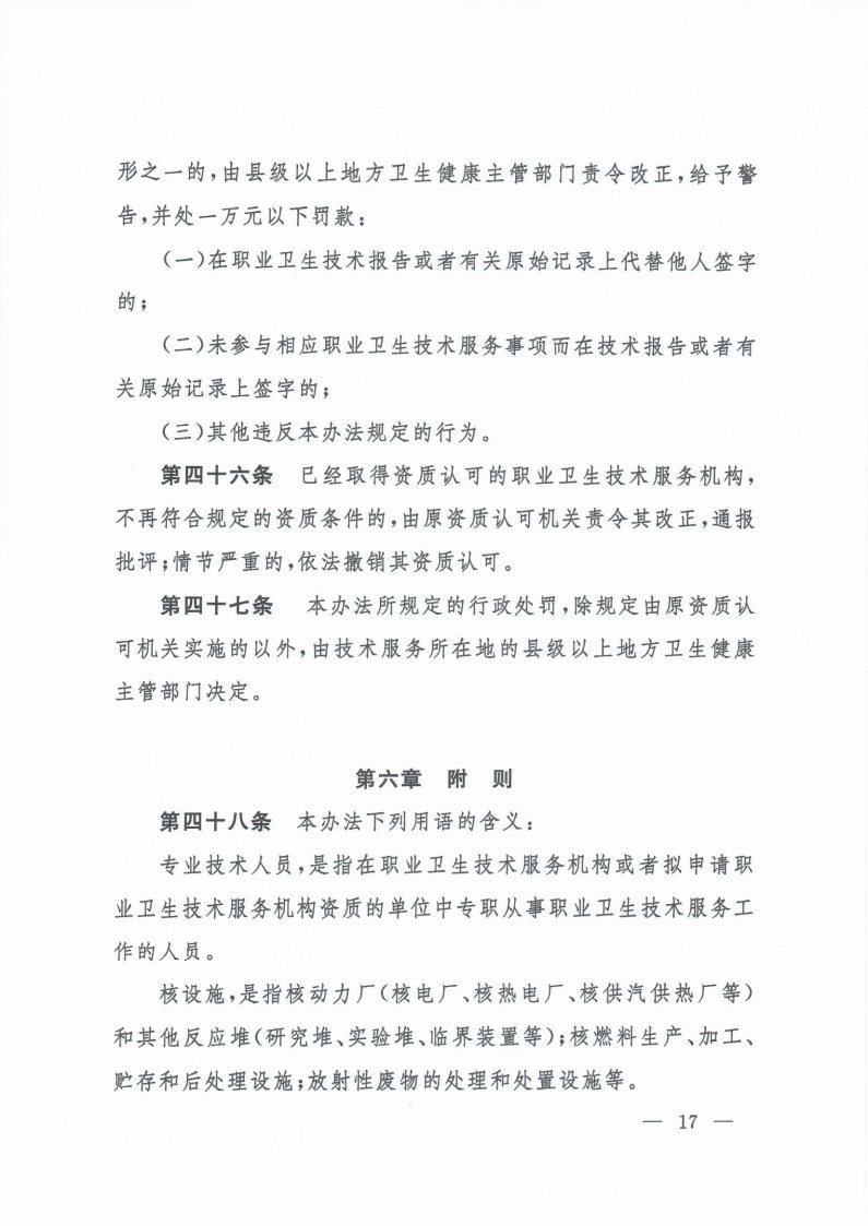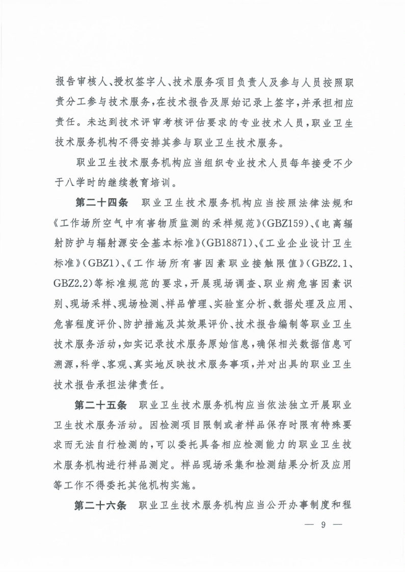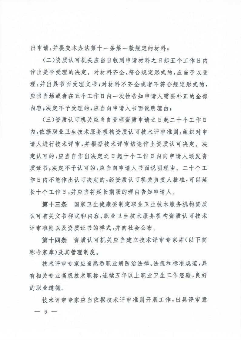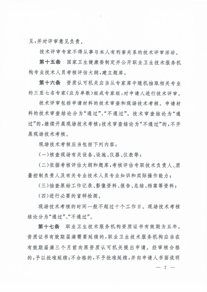 職業(yè)衛(wèi)生技術服務機構管理辦法(國家衛(wèi)生健康委令第4號)
